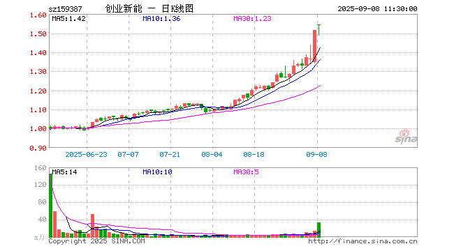 9月8日,截止午间收盘,创业板新能源ETF国泰(159387)涨1.65%,报1.541元,成交额5084.95万元。创业板新能源ETF国泰(159387)重仓股方面,宁德时代截止午盘涨0.45%,汇川技术涨14.52%,阳光电源涨1.61%,亿纬锂能跌0.56%,欣旺达涨1.67%,先导智能涨6.88%,晶盛机电跌1.34%,特锐德跌0.16%,当升科技涨4.07%,新宙邦涨5.48%。